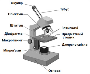 | Предметний столик | Необхідний для розміщення та фіксації предметного скла з препаратом, який досліджують. |